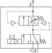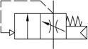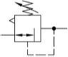 Ak sa tlak v regulovanom priestore zvýši, treba pretlak uvoľniť. V tomto prípade je sila pružiny menšia, takže pružina sa stlačí a otvorí sa odtokový kanál, cez ktorý pretlak prúdi von. (prevedenie s odľahčením)