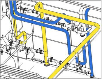 Technologické potrubia sú montované s rôznymi prvkami a tvarovkami, ktorých ucelený systém tvorí celý technologický rozvodný systém.