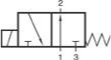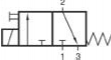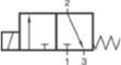Ventil je napájaný cez prípoj 1. Pružina udržuje tanierik na sedle, čiže prípoj 1 je uzavretý, pričom riadená vetva na prípoji 2 je cez prípoj 3 odvzdušnená. (Toto je základná poloha 3/2-cestného ventilu v kľudovej polohe uzavretého – NC.)