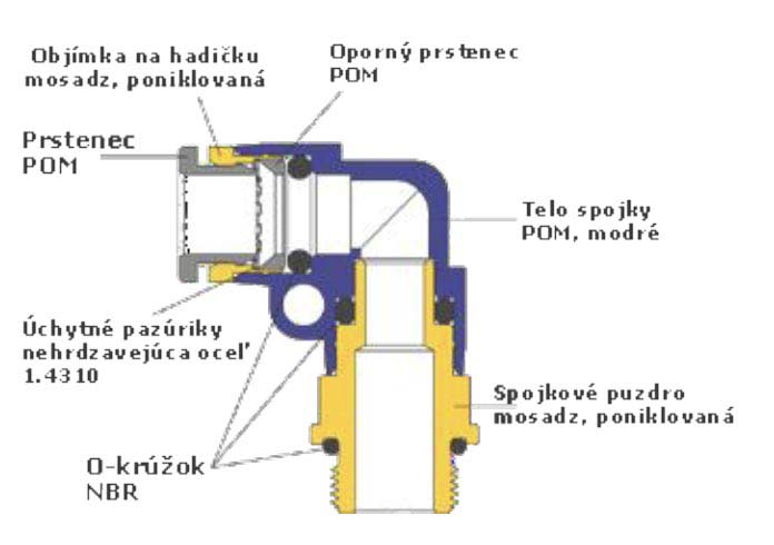 Ako aj názov nástrčnej spojky naznačuje, stačí hadičku do nej strčiť, čím sa zároveň dosiahne uchytenie hadičky aj tesnenie.