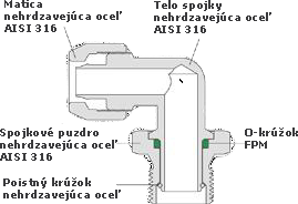 Do tela spojky (zásuvka) je zabudovaný spätný ventil, ktorý zabezpečuje, aby médium neunikalo ani pri uvoľnení spojov medzi zásuvkami a konektormi.