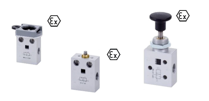 - 2/2, 3/2 s priamym riadením, 3/2 monostabilný aj bistabilný, 5/2 monostabilný aj bistabilný, 5/3-cestný