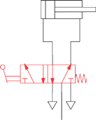 Príklad aplikácie: Ovládanie dvojčinného valca pomocou manuálne ovládaného 5/2-cestného ventilu.