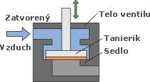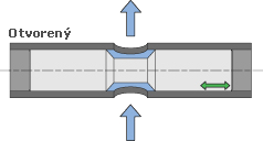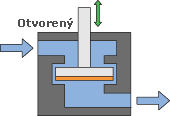 Na obrázkoch nižšie vidíme zatvorenú a otvorenú polohu sedlového ventilu.