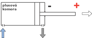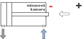 Vysunutá piestnica je v pozitívnej koncovej polohe, lebo stlačený vzduch je vedený do plusovej komory.