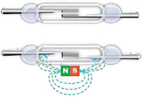 Magnetické pole stáleho magnetu v pieste valca pôsobí na jazýčky kontaktov, ktoré zmagnetizuje a začnú sa navzájom priťahovať a spoja sa. Tým zároveň uzavrú elektrický obvod a zabezpečia signál pre ďalšie spracovanie.