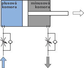 Rýchlosť pozitívneho chodu zas nastavujeme škrtiacim-spätným ventilom montovaným do mínusovej komory.